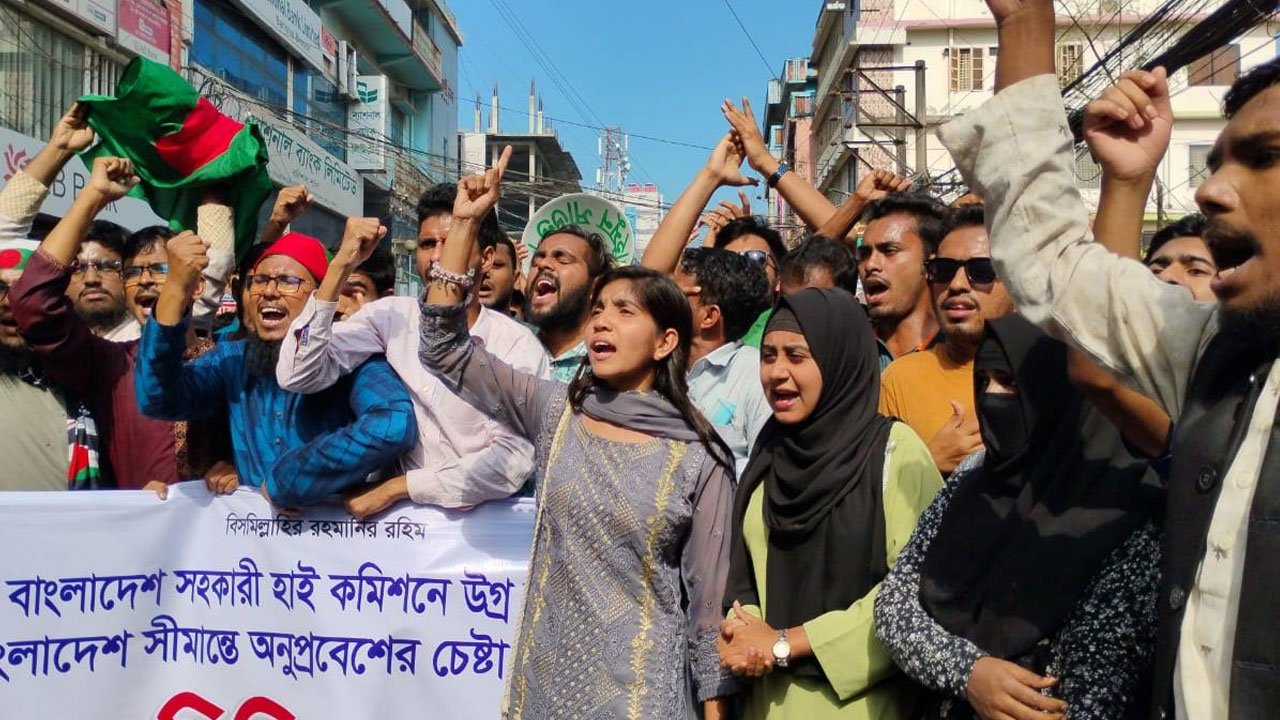 আরেক শিক্ষার্থী রাখি বলেন, স্বৈরাচার হাসিনা দেশ থেকে পালিয়ে গিয়ে বাংলাদেশ নিয়ে ষড়যন্ত্র করছে। আমরা সকল ষড়যন্ত্রের দাঁতভাঙা জবাব দেব। শিক্ষার্থী জনতার রক্তের বিনিময়ে পাওয়া নতুন বাংলাদেশে ভারতীয় উগ্রবাদীদের আস্ফালন মেনে নেওয়া হবে না। ভারত যে কোনোদিনই বাংলাদেশের বন্ধু ছিল না তার প্রমাণ হয়ে গেছে। আমরা হামলাকারীদের দৃষ্টান্তমূলক বিচার চাই।